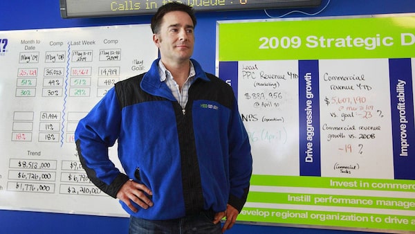 Brian Scudamore, founder and CEO of 1-800-GOT-JUNK, leads a group rally in the lunchroom of company offices in downtown Vancouver May 22, 2009.JEFF VINNICK FOR THE GLOBE AND MAIL