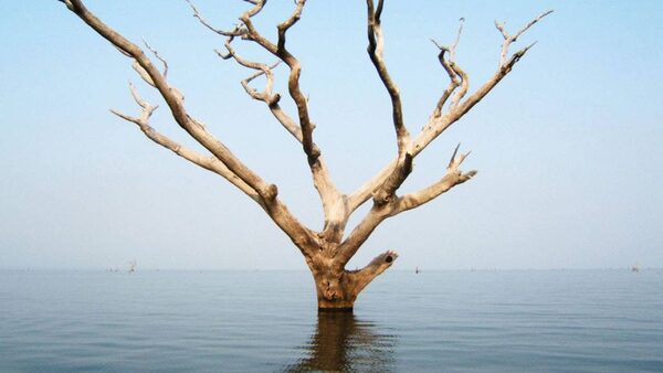 The dead and abandoned trees to be harvested are rooted to the bottom of Lake Volta, a reservoir flooded during construction of Ghana's Akosombo hydroelectric dam in 1965.Triton Logging Co.