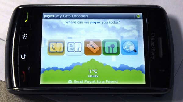 Blackberry Storm with the Poynt app on display.