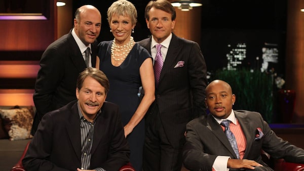 Shark Tank investors and panellists Jeff Foxworthy, Kevin O'Leary, Barbara Corcoran, Robert Herjavec, and Daymond John