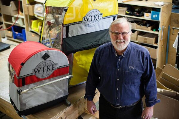 The competition facing his business, Wike, came initially from other North American companies that made trailers for kids and pets that could be pulled behind a bike. Then competitors moved their manufacturing overseas and clogged the market with more cheaply made trailers.