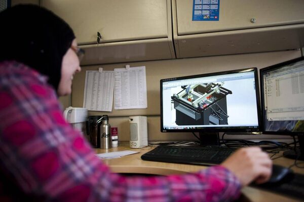 Design engineer Sirine Maalej works on the plans for an industrial machine. Research and development is the main expense in the equipment division at Williams and White, which spent several hundred thousand dollars on a recent R&D project. ‘We’re very bullish on it,’ says Mr. Williams.Rafal Gerszak/The Globe and Mail