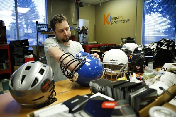 Danny Crossman, co-founder and CEO of Impakt Protective Inc., has developed wireless helmet sensors under the brand Shockbox. When attached to a sports helmet, the sensor sends an alert – via wireless transmission to a tablet or smartphone – telling a coach or parent when a player has suffered a hit to the head, and how hard.Blair Gable/The Globe and Mail