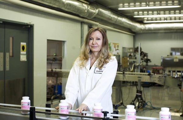 Lorna Vanderhaeghe, founder, president and chief executive officer of Lorna Vanderhaeghe Health Solutions Inc., photographed with one her products at the GFR Pharma manufacturing plant in Maple Ridge, B.C. Ms. Vanderhaeghe spends every other week, nine months of the year, on the road. ‘My biggest challenge is managing people while I am on the road – distance management,’ she says.Rafal Gerszak/The Globe and Mail