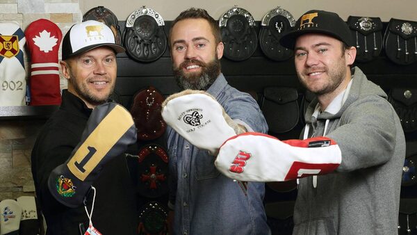 Dormie Workshop co-founders Todd, left, and Jeff Bishop and their brother Alex. The company makes custom head covers for golf clubs and other golf accessories.Paul Darrow/The Globe and Mail