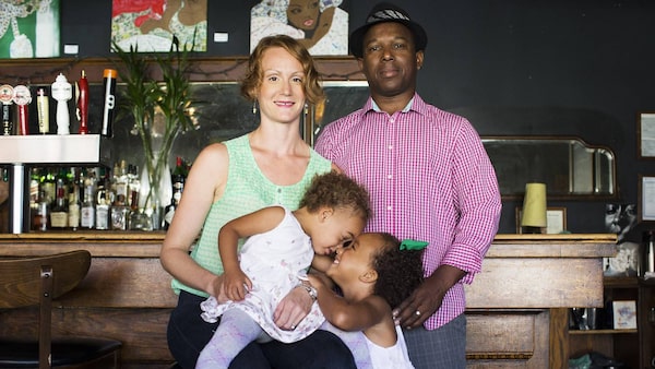 Becky Gerson and Newton Francis Jr. own the Roxton, a Toronto pub, and juggle working there with caring for their daughters, Clarissa, 2, and Elora, 4.Michelle Siu