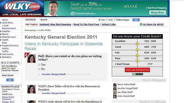 For instance: As local elections unfolded across the United States in early November, visitors to several Hearst Television web pages saw updates from reporters appear on their screens automatically – without hitting the refresh button. The reporters were using cellphones to send short news items and pictures. In some cities, these mingled with tweets from the candidates themselves.