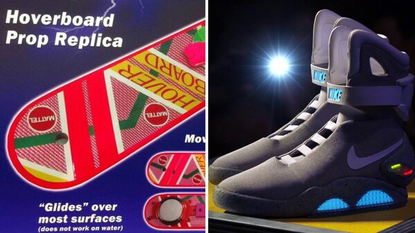 Mattel Hoverboard replica and Nike mags from Back to the Future