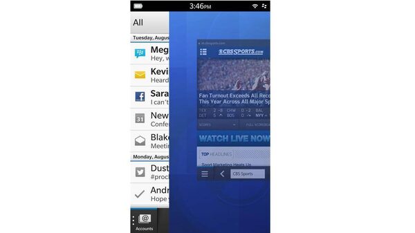 RIM has been doling out bits of information about its BlackBerry 10 devices, which are expected in January. The BlackBerry Peek feature (above) will let you take a quick look at another app (say, incoming messages) with a simple thumb swipe, without leaving the app you’re in, or pop into that app by continuing the gesture. More information will come as the launch approaches.