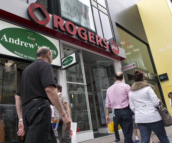 People walk past a Rogers store in Montreal on Tuesday, June 26, 2012.Ryan Remiorz/The Canadian Press
