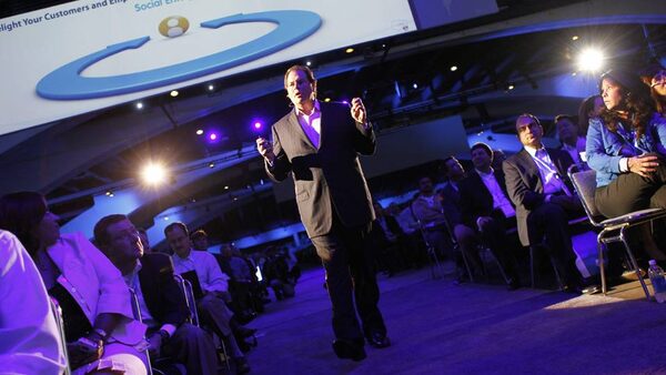 Salesforce CEO Marc Benioff walks among attendees as he delivers his keynote address at the Dreamforce event in San Francisco, California August 31, 2011.ROBERT GALBRAITH