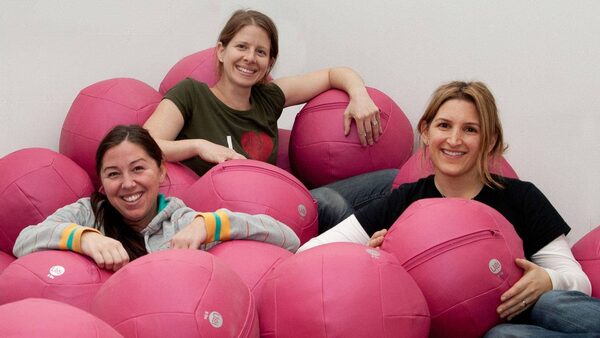 Ugi Fitness co-founders Sara Shears, Deb Karby and Melanie Finkleman, and their Ugi ball