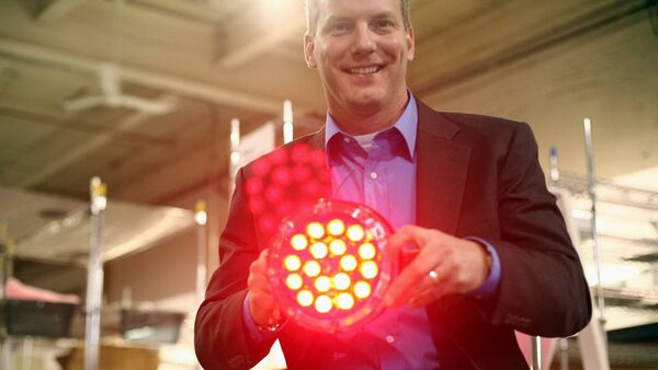 CRS Electronics President Scott Riesebosch pose for a photo with a LED lamp at the factory in Welland, Onatrio.DAVE CHAN