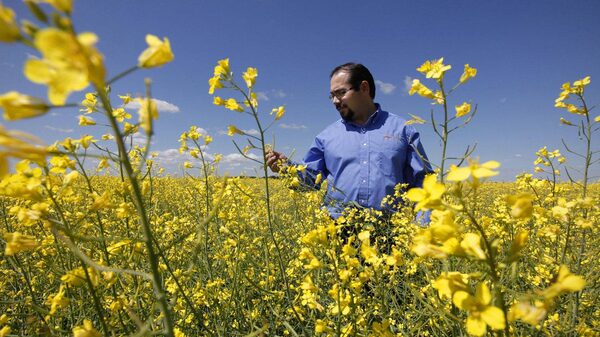 Wade Barnes, founder of Farmers Edge, inspects a crop of canola just south of Winnipeg.JOHN WOODS