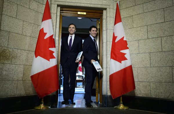 Minister of Finance Bill Morneau walks with Prime Minister Justin Trudeau as they leave his office on route to deliver the federal budget in the House of Commons on Parliament Hill in Ottawa on Feb. 27, 2018.Sean Kilpatrick