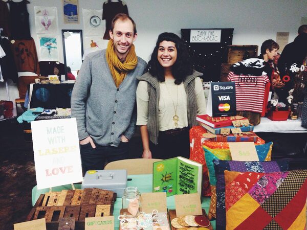 Ottawa's Third Son Laserworks co-founders, from left, Jesse Kaunisviita and Gabriela Warrior Renaud at the Gabba Hey Holiday Craft Sale.Gabriela Warrior Renaud