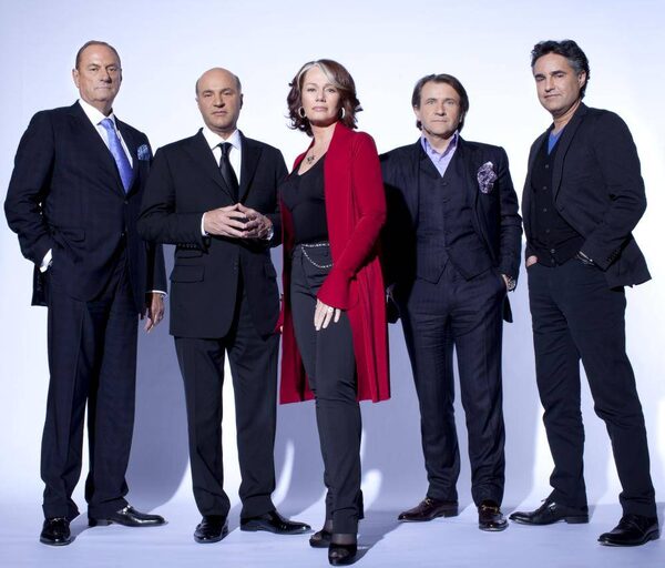 Dragons’ Den cast, from left: Jim Treliving, Kevin O'Leary, Arlene Dickinson, Robert Herjavec, Bruce Croxon.
