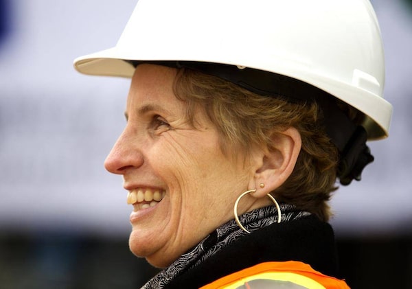 Premier Kathleen Wynne in a hard hat ans safety vest on March 13, 2013.Peter Power/The Globe and Mail