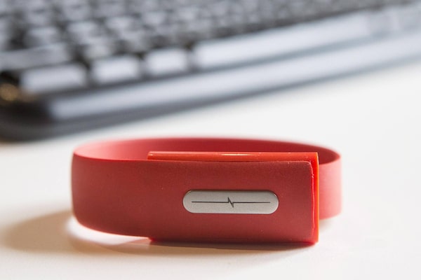 A Nymi band sits on a table top at the company's Toronto offices on Monday, March 10, 2015. CEO Karl Martin is stepping aside and becoming CTO after the recruitment of industry veteran John Haggard.Chris Young/The Canadian Press