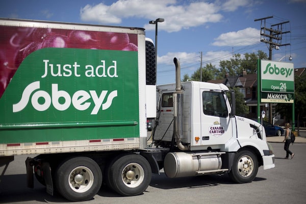 A Sobeys Inc. truck sits outside one of the company's grocery store in Toronto, in this file photo.Bloomberg