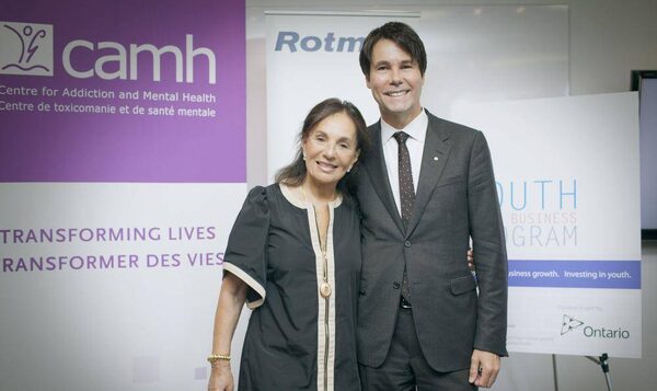 Philanthropist Sandra Rotman asked Eric Hoskins, Ontario Minister of Children and Youth Services, to have the province help fund a youth small-business program for those with mental illness.