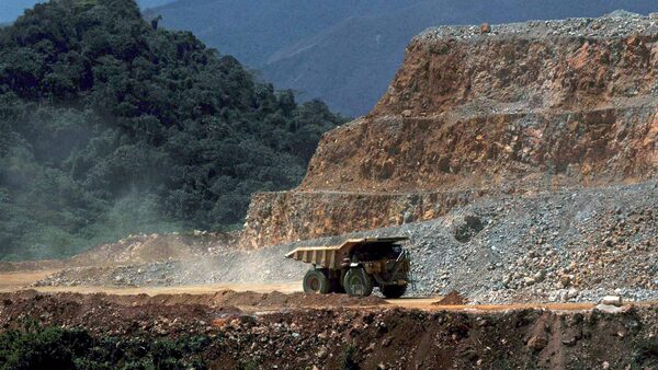 A truck drives along a hill of Pueblo Viejo mine in the Sanchez Ramirez province.Manuel Diaz/The Associated Press