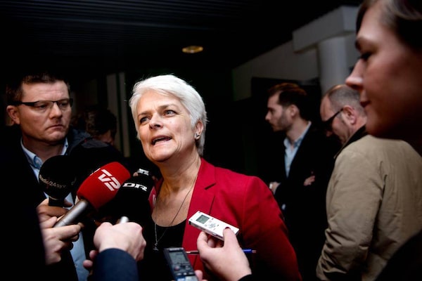 Danish Socialist People’s Party leader Annette Vilhelmsen speaks to the media in Copenhagen on Thurs. Jan. 30, 2014, after her party quit the coalition government amid discord over plans to sell a stake in state-controlled DONG Energy to Goldman Sachs and other investors, including Quebec’s Caisse.Katinka Hustad/The Associated Press