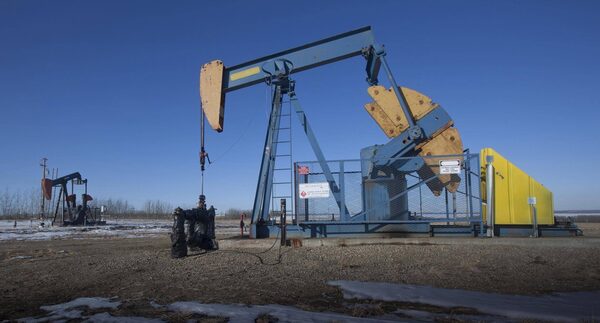 A pair of pumpjacks pump oil from an old well in a Pembina oil field near Pigeon Lake, Alta., on Feb. 17, 2012.Norm Betts/Bloomberg
