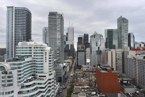 Looking east along King St. West from Peter St. in downtown Toronto from an upper floor at 375 King St. West on Sept 9 2013. The Hyatt Regency Toronto hotel is at left with bank towers located centre of photo.Fred Lum/The Globe and Mail