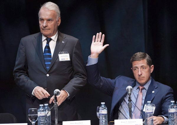 Chairman Alain Bouchard, left, and CEO Brian Hannasch attend Couche-Tard’s annual general meeting in Toronto in September, 2014.Hannah Yoon/The Canadian Press