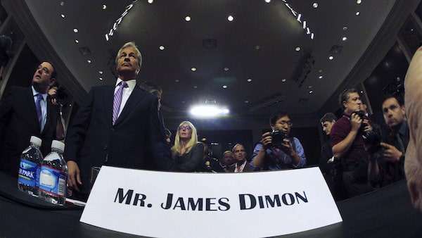 JP Morgan Chase and Company Chief Executive Officer Jamie <strong>Dimon</strong> (2nd Left) waits to testify before the U.S. Senate Banking, Housing and Urban Affairs Committee hearing on "A Breakdown in Risk Management: What Went Wrong at JPMorgan Chase?" on Capitol Hill in Washington, June 13, 2012.LARRY DOWNING/Reuters