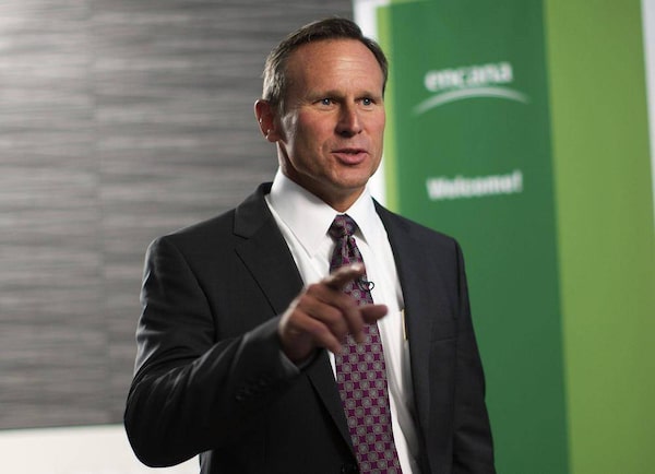 Doug Suttles of EnCana speaks to the media after the company announced him as the new president and CEO in Calgary, Alberta, in this June 11, 2013 file photo. Encana Corp, Canada's largest natural gas producer, said on November 5, 2013, it will cut about 20 percent of its workforce, slash its dividend, and focus future spending on just five regions rich in oil and gas liquids as it looks to move away from low-value natural gas production.Todd Korol/Reuters