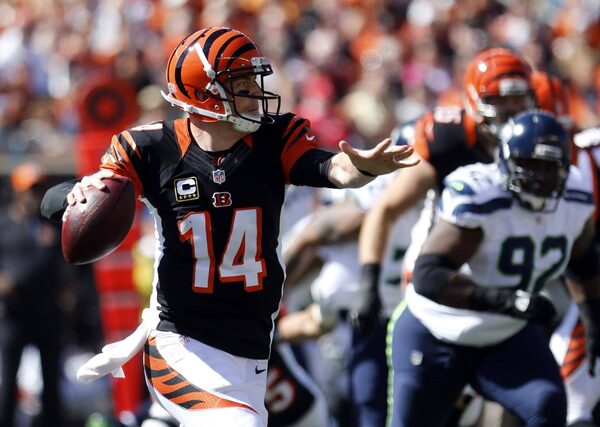Cincinnati Bengals quarterback Andy Dalton looks to pass against the Seattle Seahawks in Cincinnati on Sunday, Oct. 11.Mark Zerof