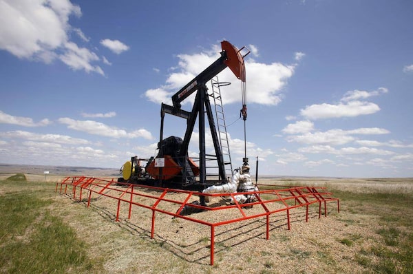 A Canadian Natural Resources pump jack pumps oil out of the ground near Dorothy, Alberta, June 30, 2009.Todd Korol/Reuters