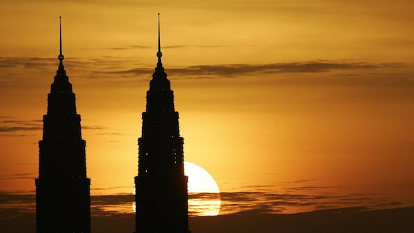 The sun sets over the Petronas Twin Towers in Kuala Lumpur, June 26, 2006.Zainal Abd Halim / Reuters