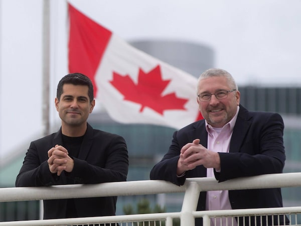 TIO chief executive Hamed Shahbazi, left, stands with the vice-president of PayPal’s Xoom division, John Kunze, which was also acquired by PayPal back in 2015.Darryl Dyck