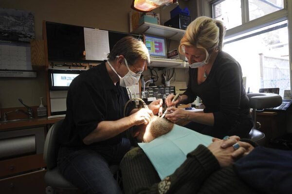 Dentist Tim Milligan and assistant Tracy McCaughan treat patient Doc Maclean at Mlliagan's offices in Toronto on Jan. 9, 2009KEVIN VAN PAASSEN/The Globe and Mail
