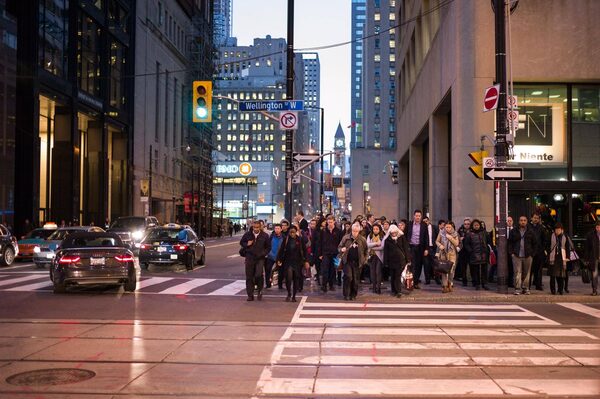TORONTO ON -- NOVEMBER 9, 2015: Commuters gather at Bay and Wellington Streets, during evening rush hour, in Toronto, November 9th, 2015. (Ian Willms / Boreal Collective for the Globe and Mail)Ian Willms/The Globe and Mail
