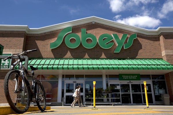 Pedestrians pass in front of a Sobeys Inc. grocery store stands in Toronto, Ontario, Canada, on Wednesday, July 24, 2013.Brent Lewin/Bloomberg