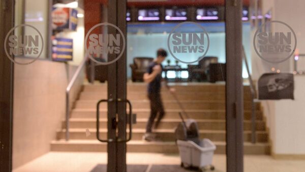 A cleaner mops the steps in the lobby of the Sun News Network building in Toronto on Thursday Feb. 12, 2015. The Sun News Network is shutting down Friday morning after negotiations to sell the troubled television network were unsuccessful.Doug Ives