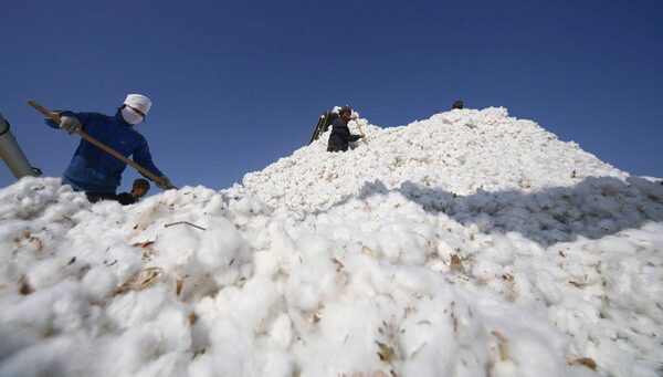 Farmers stack cotton at a purchase station in Hami, Xinjiang Uighur Autonomous Region in China.� Stringer Shanghai / Reuters/Reuters