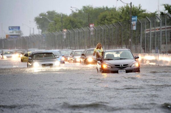 Flooded cars are stranded during a storm in Toronto July 8, 2013. TD Bank Group is expecting a third-quarter net loss of between $240-million and $290-million after tax due to flooding in Alberta and Toronto this year.FRANK GUNN/The Canadian Press