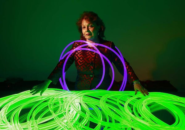 Betty Lou Pacey, owner of Innovative Lighting, is surrounded by large core of optical fibre lighting in her offices in Vancouver.JEFF VINNICK/The Globe and Mail