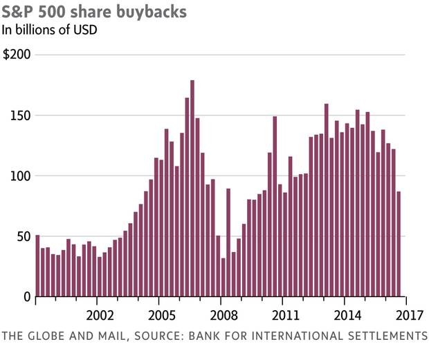 "Dividends per share of U.S. equities have been growing at a much faster rate since the [Great Financial Crisis], giving rise to questions about long-term sustainability … This is because the faster growth was supported in part by a significant shift in corporates' dividend policy. The share of net income paid out in dividends has increased by more than half over the last five years. … The dividend payout ratio is back to the relatively high levels observed in the 1970s, and thus may be approaching an upper bound. High dividends per share were also supported by stock repurchases. Except for a short interlude in 2008–09, share repurchases have been very large since the early 2000s. … When and if interest rates begin to rise, corporates may have the incentive to tilt their capital structure back to equity, or at least to reduce stock repurchases, which could raise further questions about stock market valuations." Bank for International Settlements
