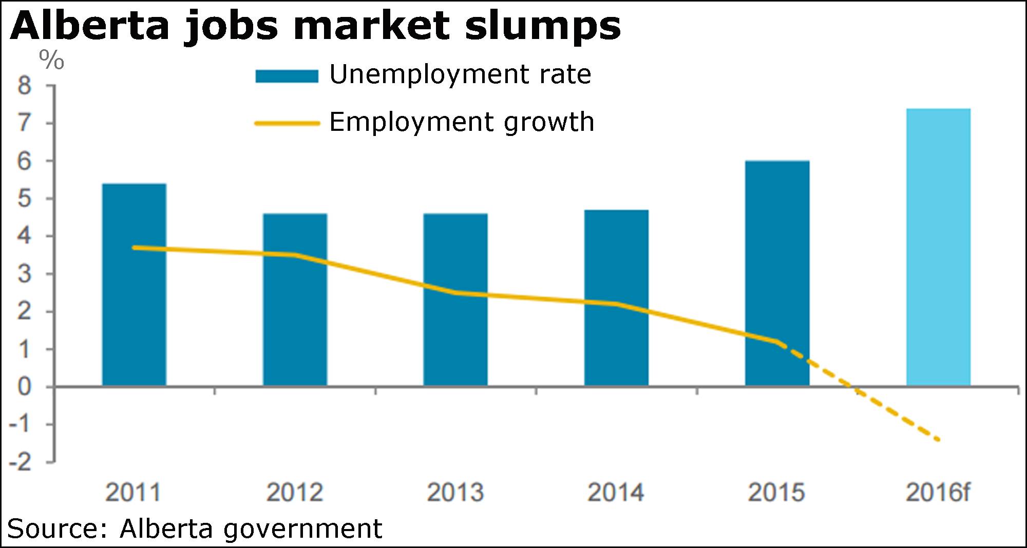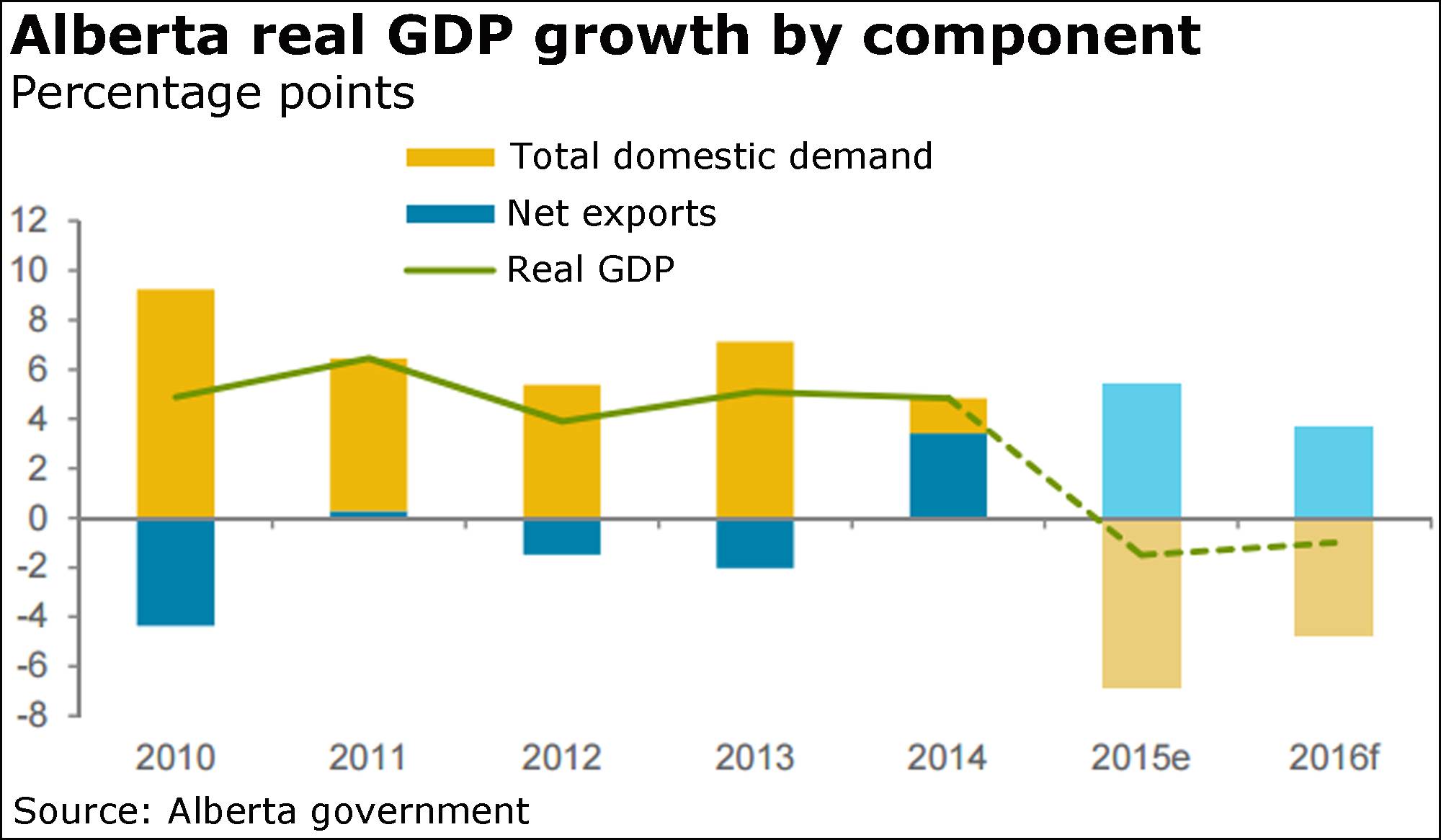 “With labour conditions expected to weaken further in 2016, household consumption is forecast to fall 0.5 per cent,” the Alberta document said.