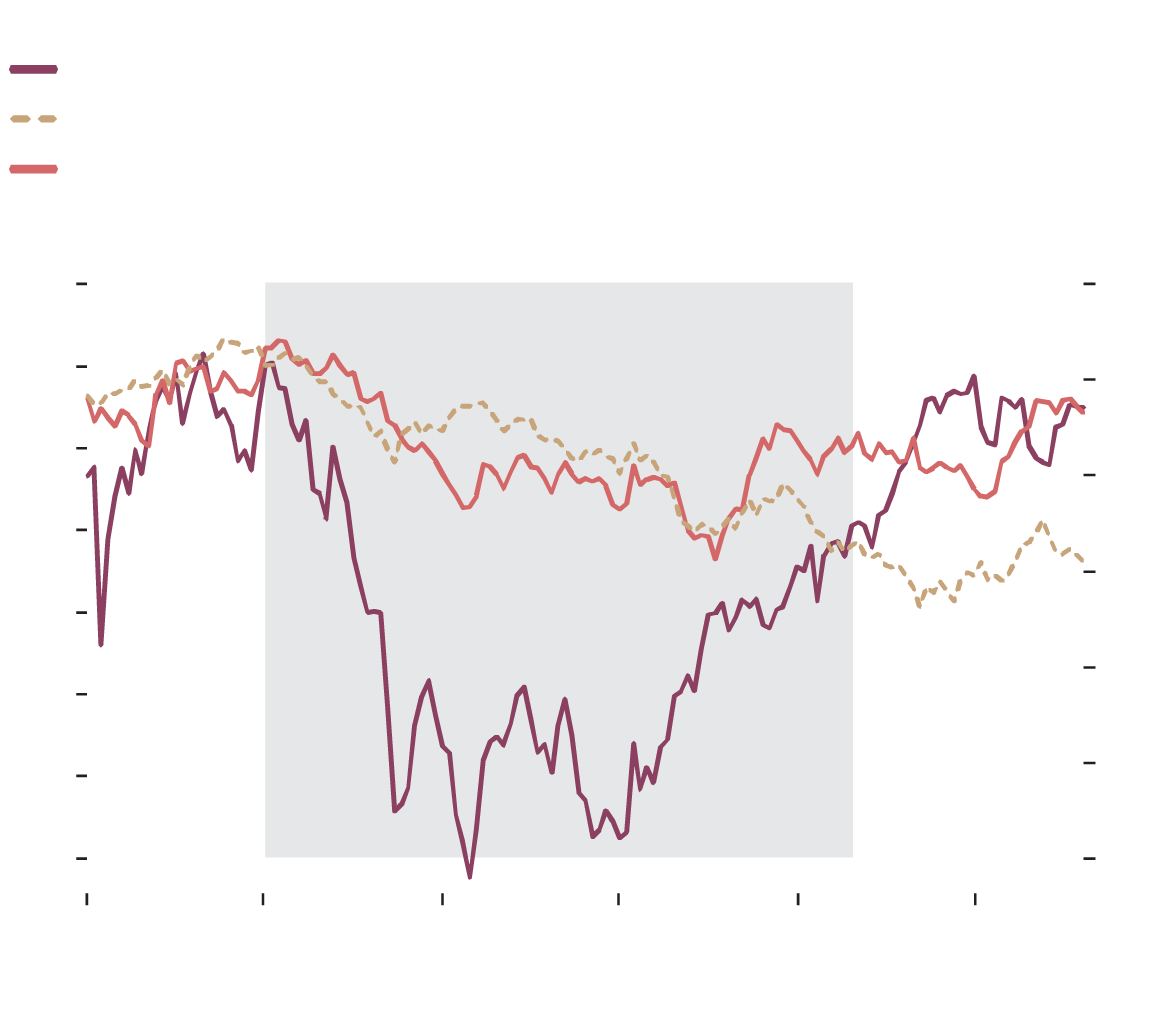 Daniel Hui and Maoko Ishikawa, JPMorgan Chase: "There are thankfully few historical episodes to benchmark currency performance amid U.S.-provoked trade wars, but from our limited sample size, general expectations are that the USD weakens against other reserve assets, and high beta and trade-sensitive currencies … The closest parallel to [last] week's trade announcements,was George W. Bush's five-year 8-30-per-cent gradiated tariffs on steel imports … [The chart below] presents performance of the trade-weighted dollar, the S&P, and [yields on 10-year U.S. treasuries] during, and in the six months before and after Bush's tariffs were imposed and then repealed, all of which declined notably immediately after the tariff announcement."