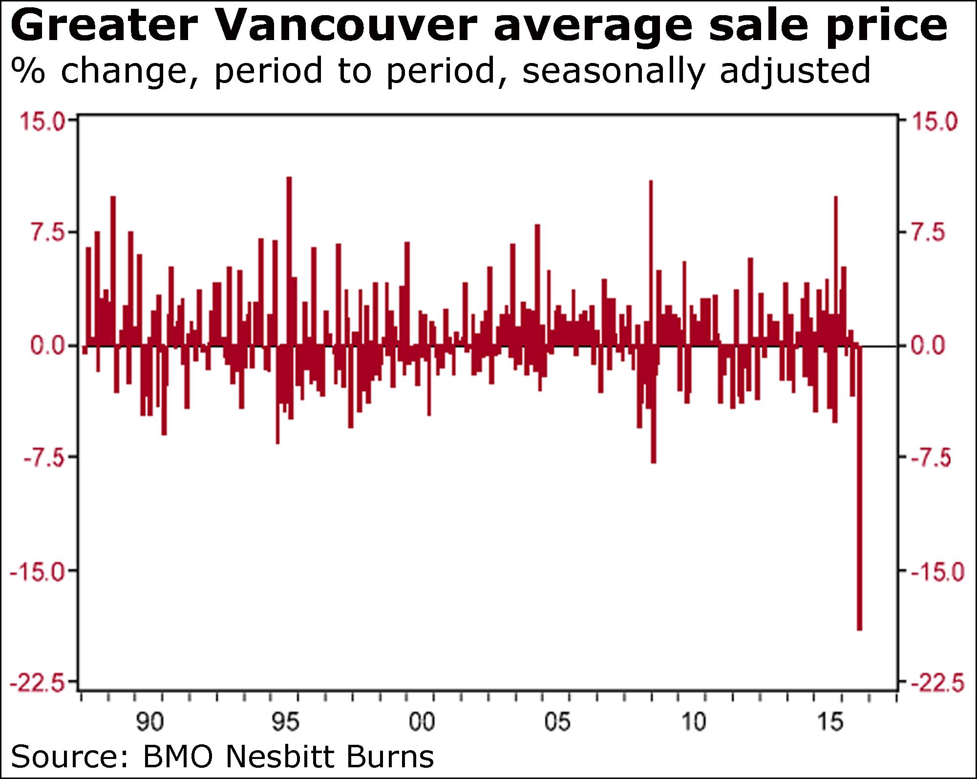 While Vancouver’s benchmark price is still up hugely, Mr. Guatieri pointed to the average sales value.