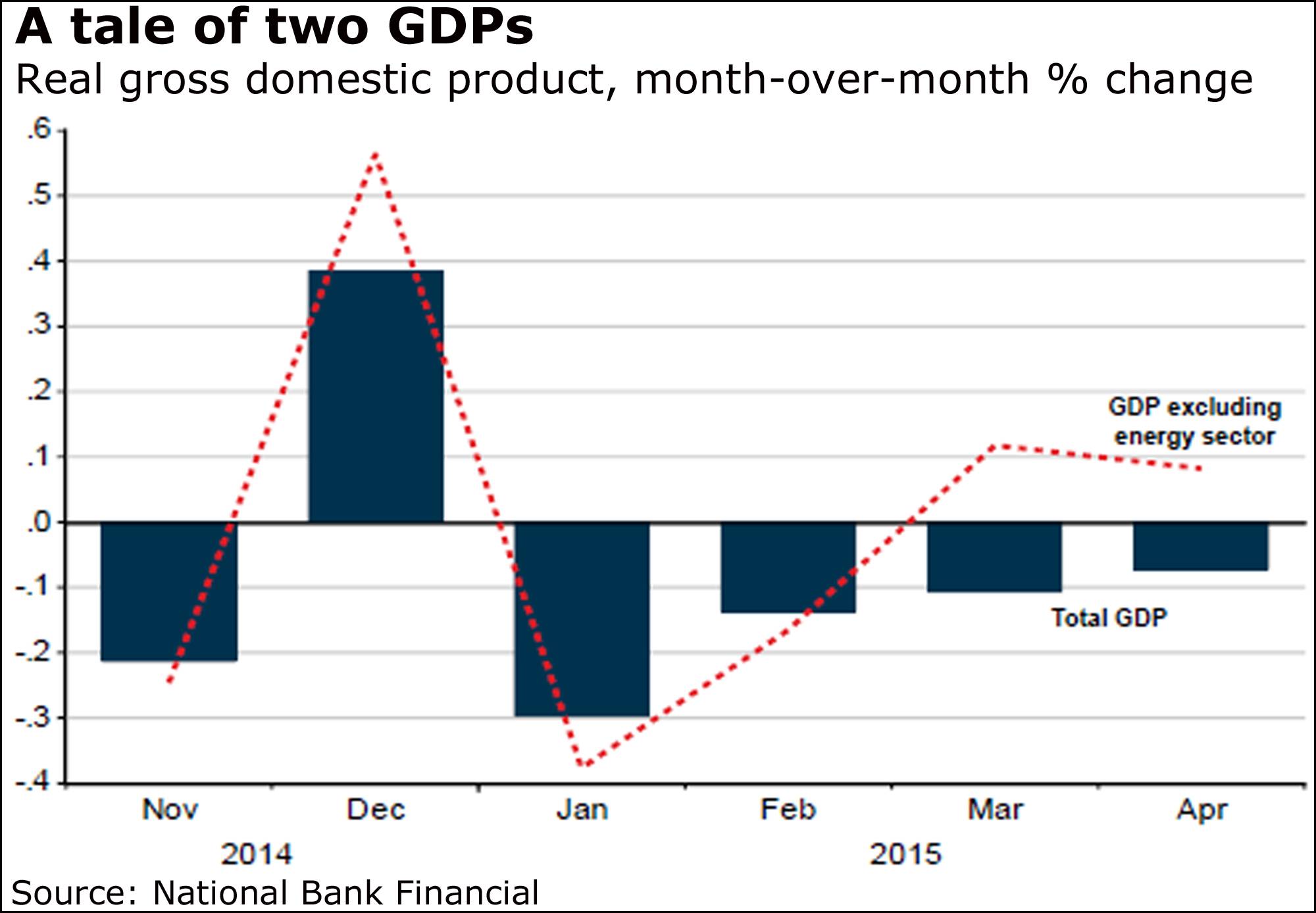 But: Take energy out of the equation, and Canada’s economy “appears” to have grown by 1 per cent to 1.5 per cent, said National Bank’s Mr. Marion, adding that “the gap between the energy sector and the rest of the economy has never been so wide.”