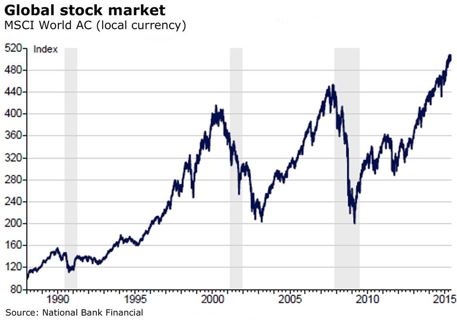 “Global equities rose to an all-time high in May, with the MSCI AC index brushing off comments for Federal Reserve chair Janet Yellen that stock market valuations may be on the high side if interest rates continue to rise,” National Bank’s Stéfane Marion and Matthieu Arseneau say in a new report.