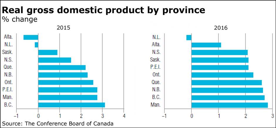 The numbers for Alberta really tell the story, with a projected gain of just 0.6 per cent this year and 1 per cent next, compared to 3.4 per cent in 2014.